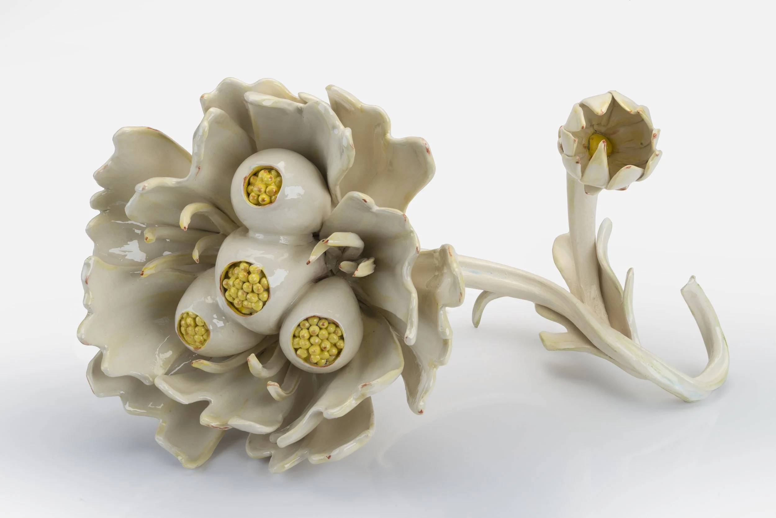 The exhibition “Fugitive Color” features artwork from Linda Lighton (ceramics), Kuzana Ogg (painting), and Erin McIntosh (paintings and works on paper). Each artist creates work that is sensorially driven, emphasizing color and balance with biological undertones.